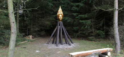 Ole Tersløse has created a site specific installation for Skovsnogen Deep Forest Artland. The installation resembles a campfire with a flaming head with peacefully closed eyes.